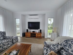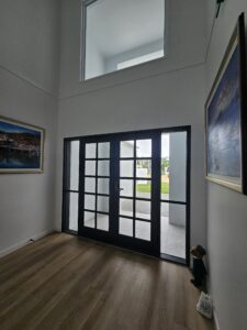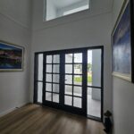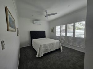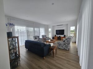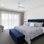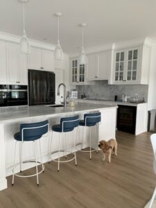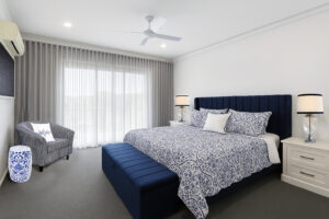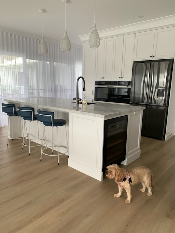 Stone countertops are a must for that luxurious, natural feel, while timber-look floors and crisp white plantation shutters add warmth and texture. Shaker-style cabinetry, elegant tapware, pendant lighting, and large-format subway tiles in wet areas elevate the space, ensuring a chic yet timeless Hamptons aesthetic.