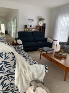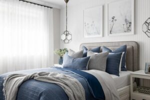 Inside, the palette is all about light, airy whites paired with soft greys or creams, creating a tranquil, beach-inspired atmosphere. Natural materials such as linen and cotton blend beautifully with ocean-inspired blues, soft greys, and crisp whites. To add depth and warmth, incorporate accent colours like pastel hues of sage, duck egg blue, lemon, and blush, which perfectly complement the serene neutral tones.